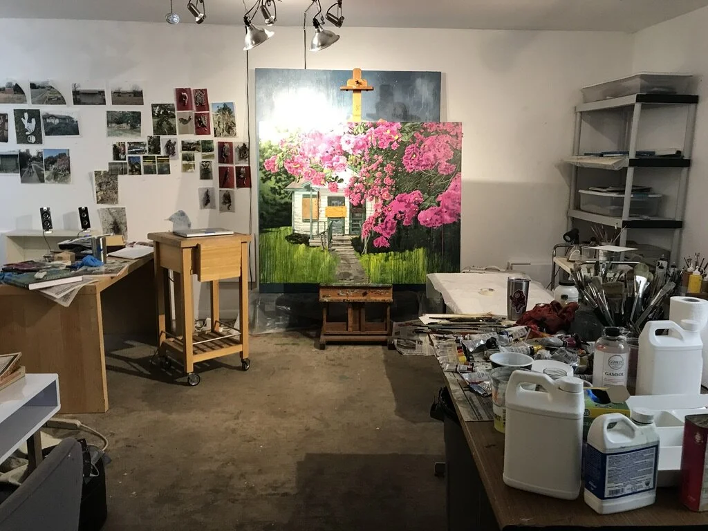 I am not the kind of artist who waits for flashes of inspiration. If I was I would be waiting forever. Maybe that’s a consequence of getting older. Work begets work in my studio. Being an art educator and a parent means that personal art-making time is always at a premium. That said, if I’m between projects I focus on practical tasks, like cleaning up the studio, stretching canvases, editing reference photos and looking at lots and lots of other art. I move the oils over here and the acrylics and watercolors over there. Then I move them all back again.